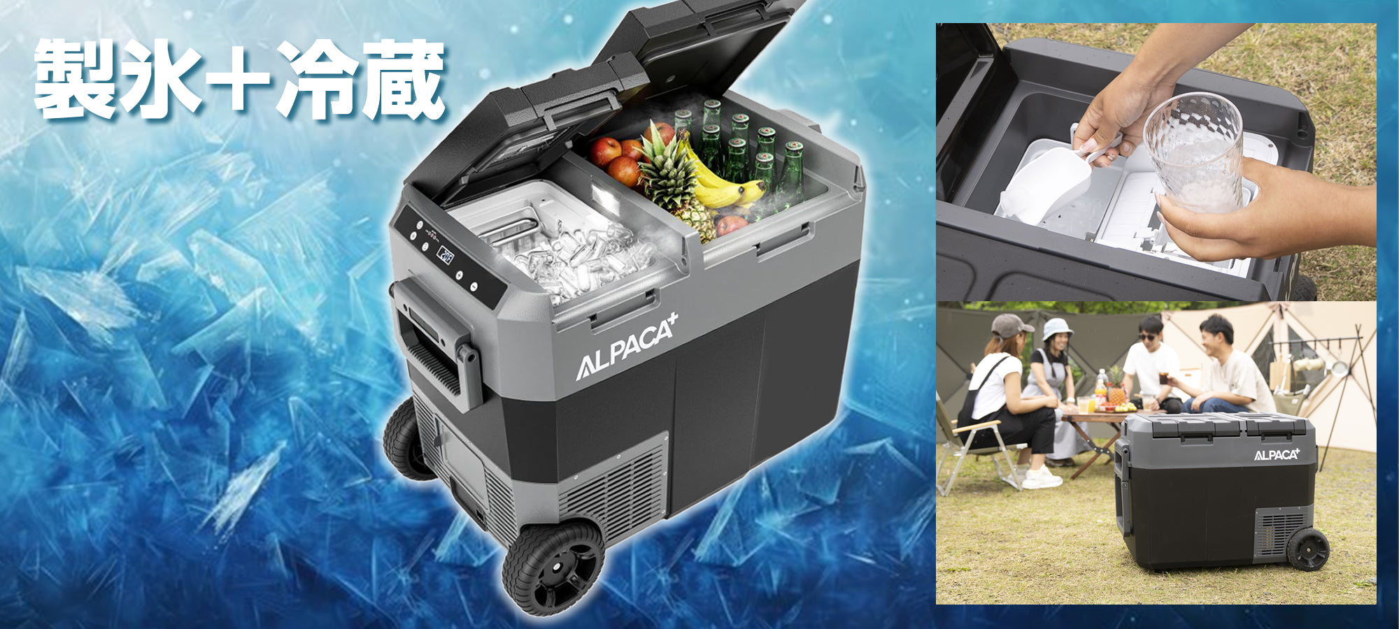 詳しく見る▸アルパカ プラス コンビは、ポータブル冷蔵庫/自動製氷機です。キャンプや野外イベントなど、様々なシーンで活用できます。