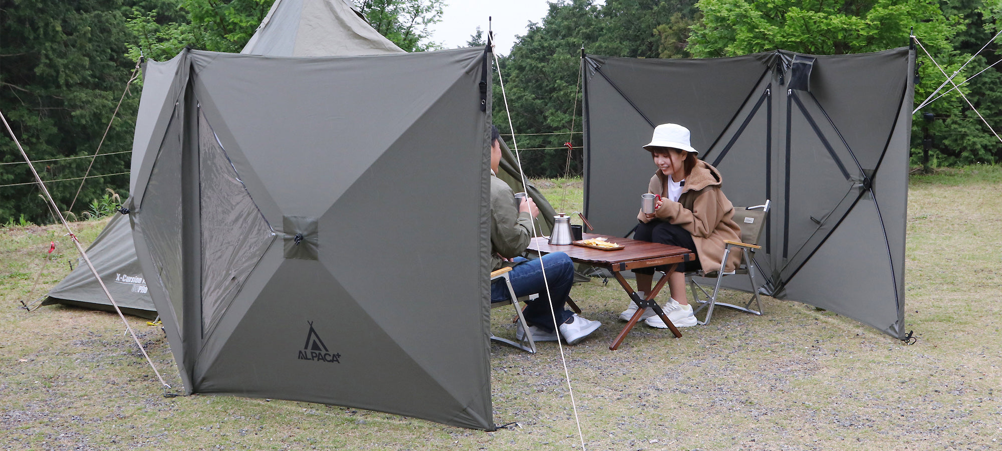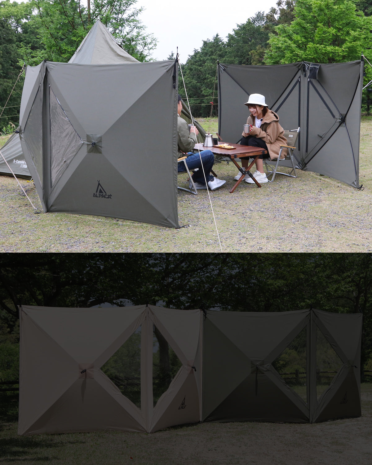 詳しく見る▸アルパカ プラス スクリーンは、ポップアップ式の防風陣幕です。大人一人で組み立てかんたん。サイト作りのアイデアが広がります。